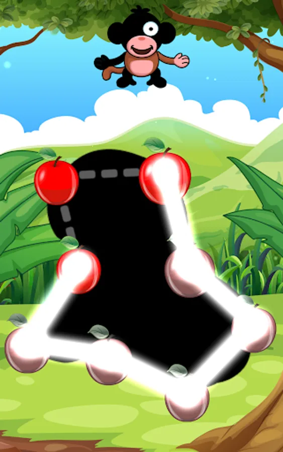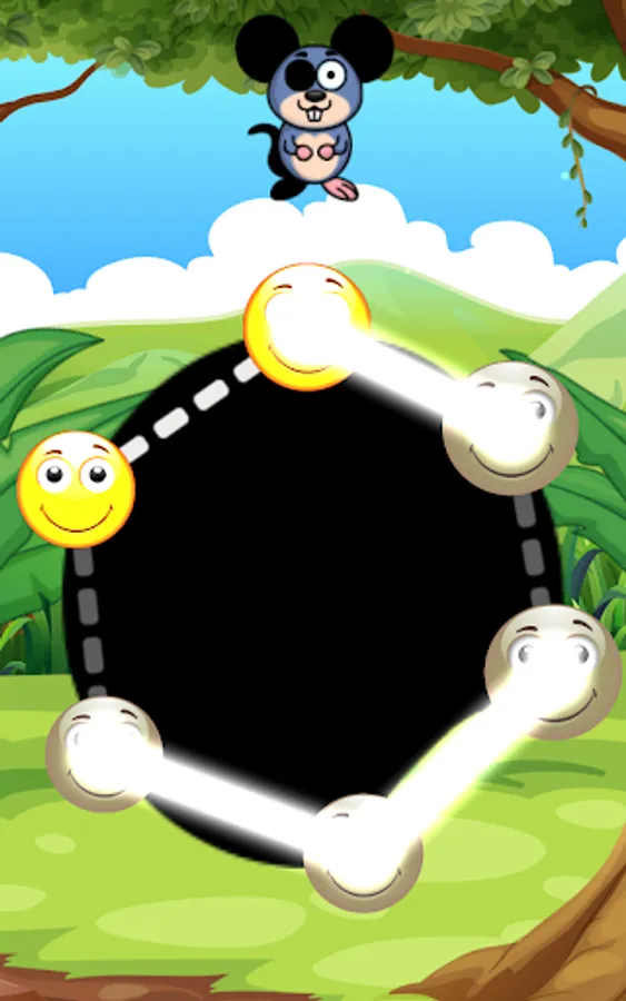 Children trace animals by connecting the balloons together. This is done by dragging the trace line from one balloon to the next. Several visual cues will help your child know which balloons to connect.