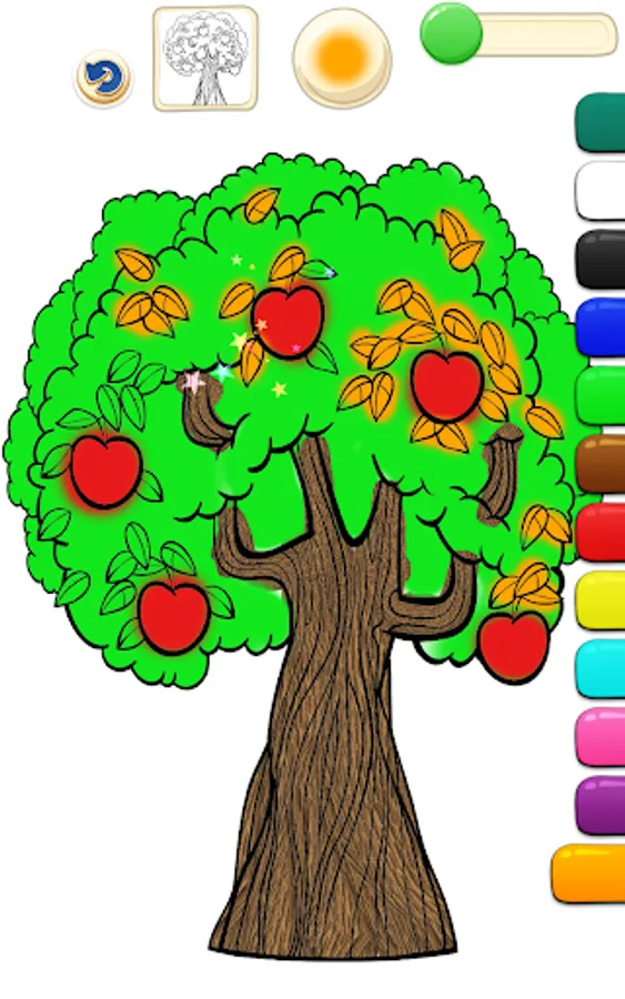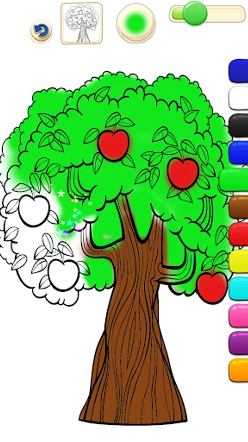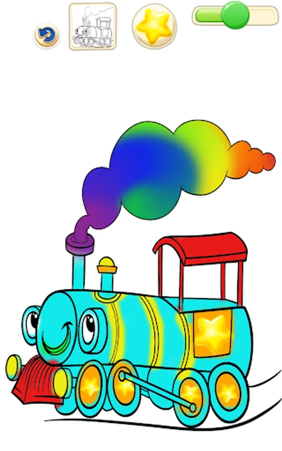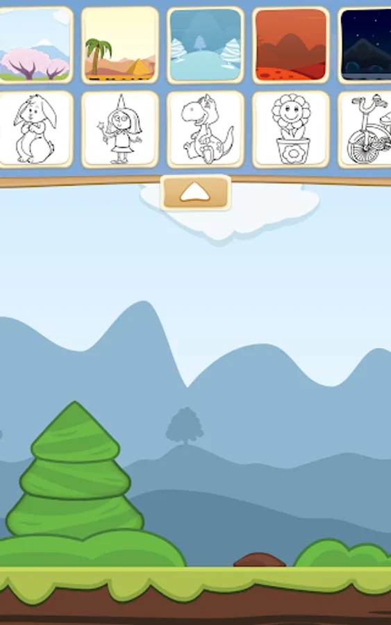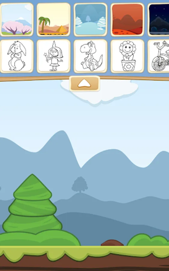 This game features 20 scenic backgrounds and 20 coloring book backgrounds. The scenic backgrounds allow kids to draw anywhere, and the coloring book backgrounds allow kids to draw inside of the lines.