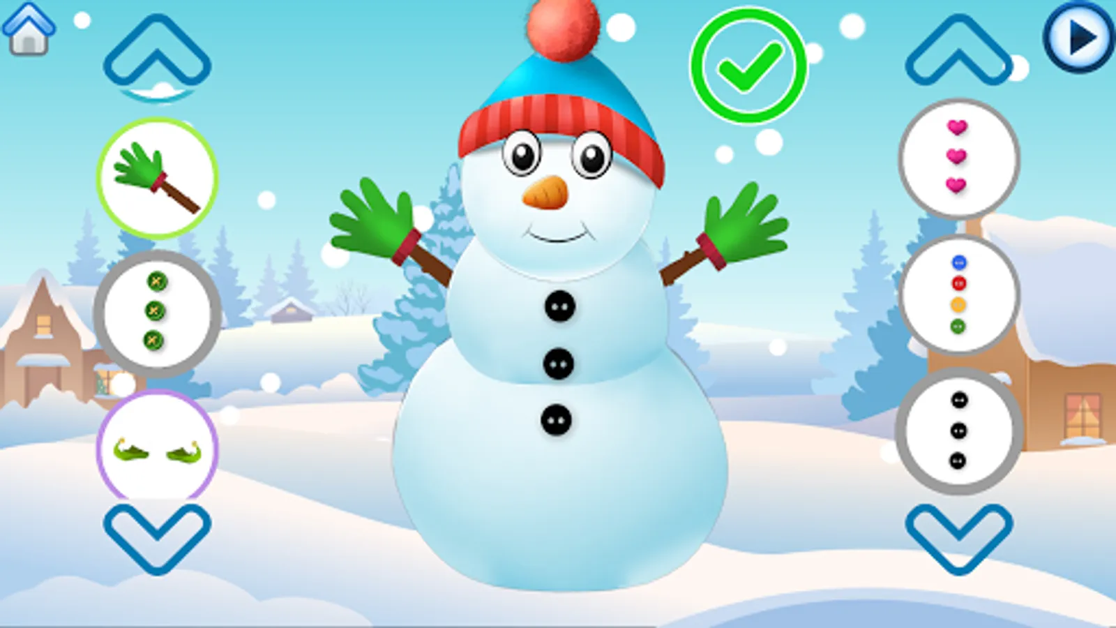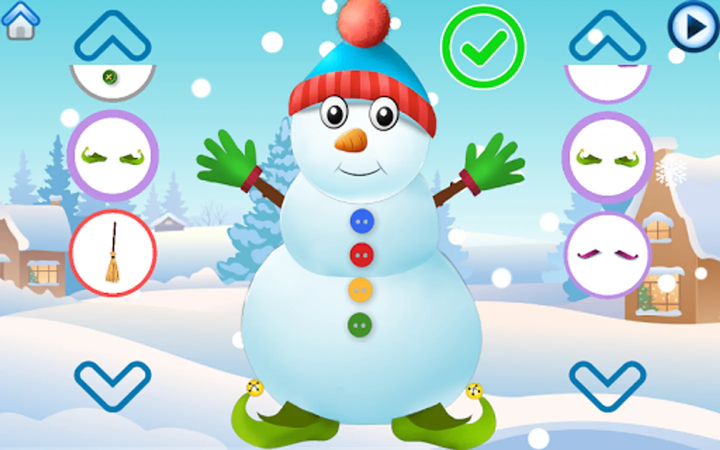 Sing along with Frosty as you design your own snowman. Choose the eyes, nose, scarf, hat, and other body parts. Make your snowman big or small, and create a whole village of snowmen!