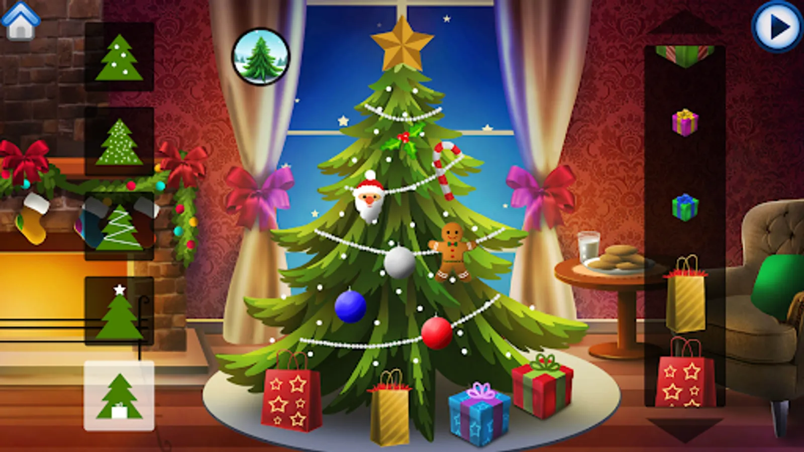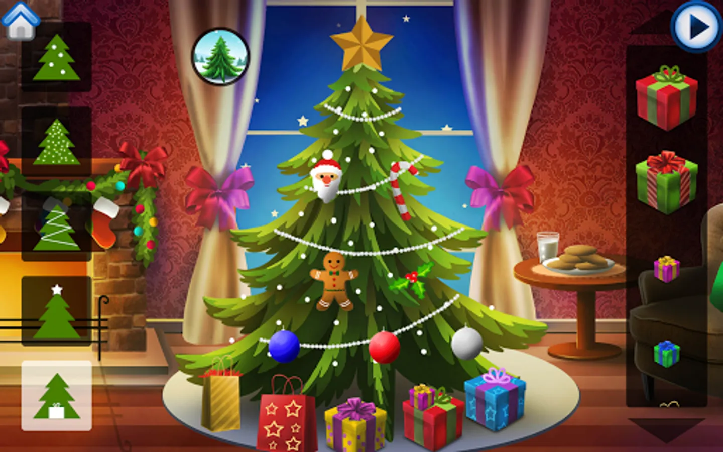 Decorate your own Christmas tree inside or outside. Place the ornaments, choose the lights and tinsel, put on the topper, and surround the tree with gifts.