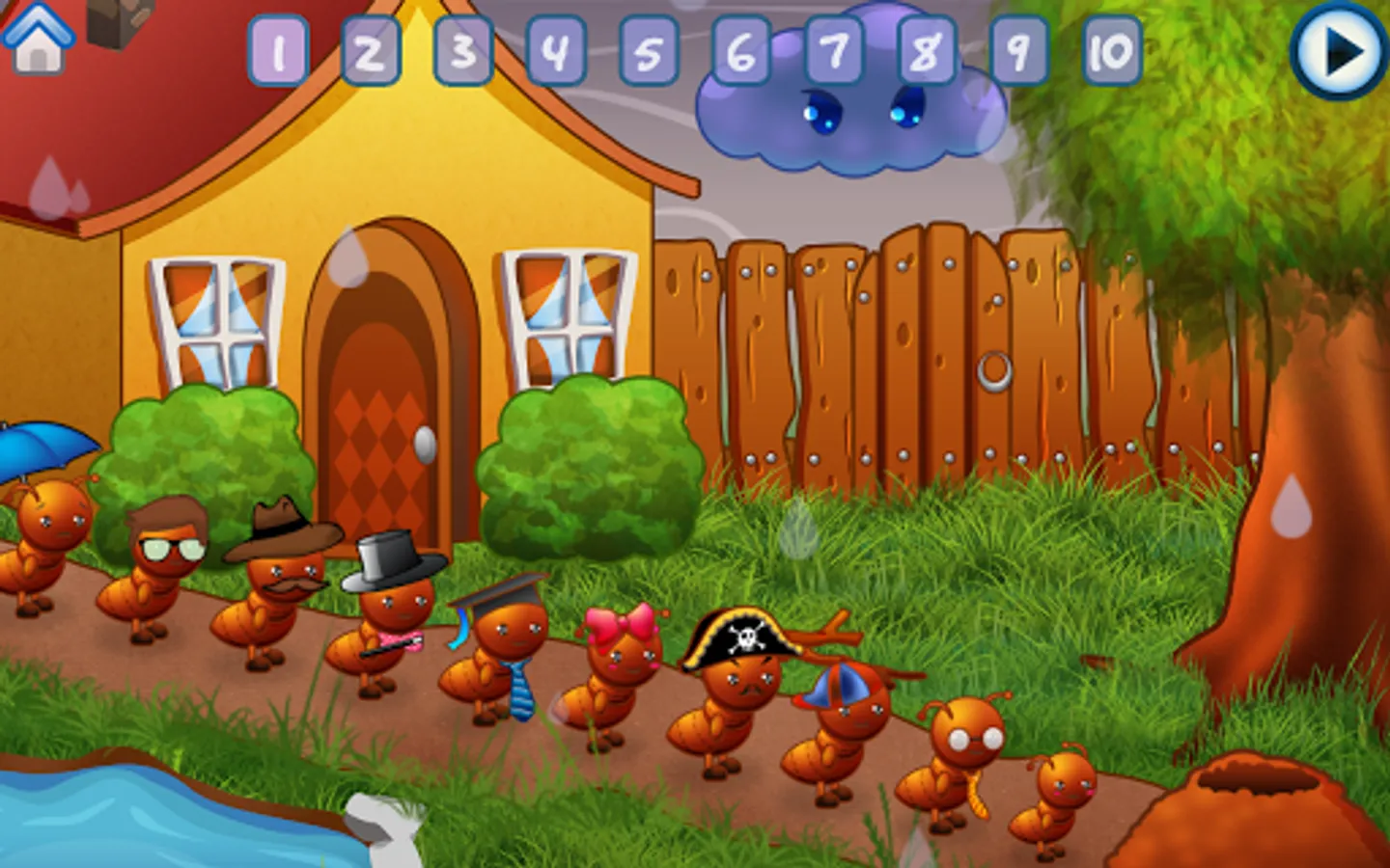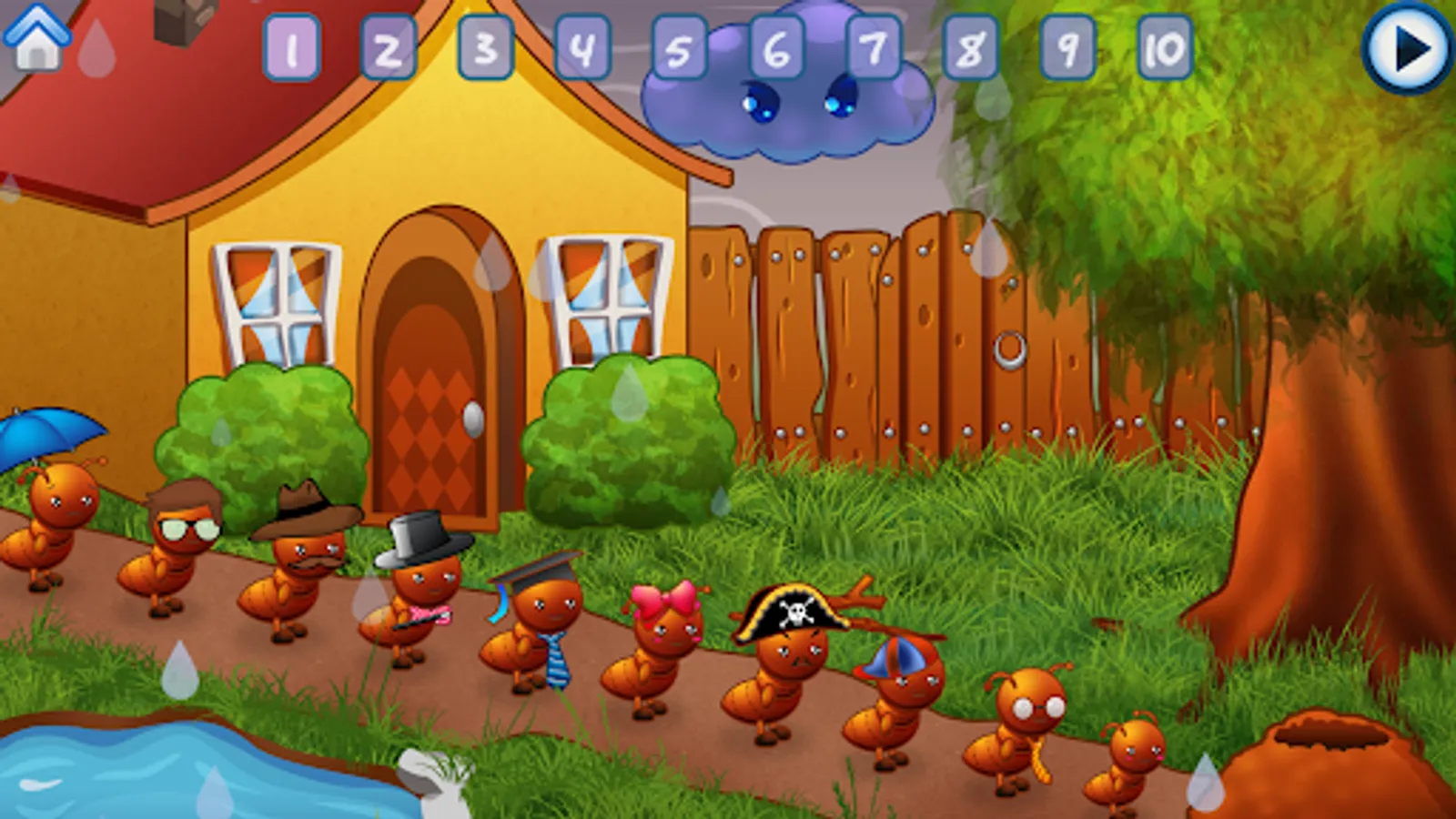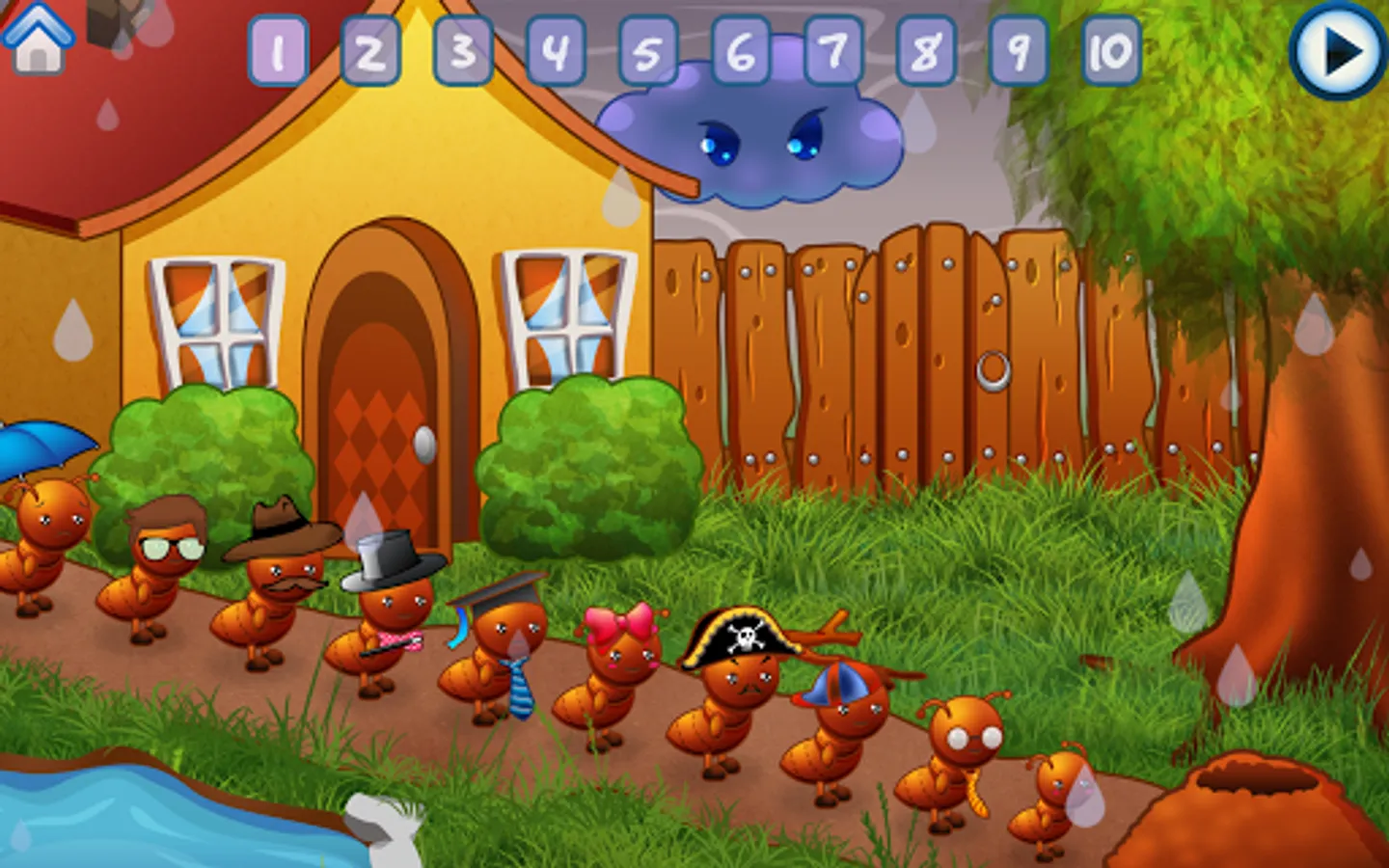 Hurrah! Ten busy ants march down the path to get out of the rain. The little ant leads the way and performs the action of each verse. Your children will love tapping on the ants and hearing all they have to say.
