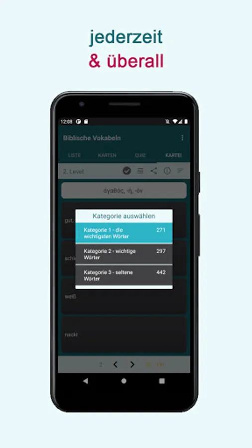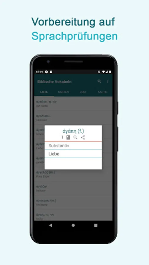 With the app, you can prepare for the Graecum & Hebraicum language exams or study for exegetical subjects (Old and New Testament). Knowledge of the Greek and Hebrew script is required.