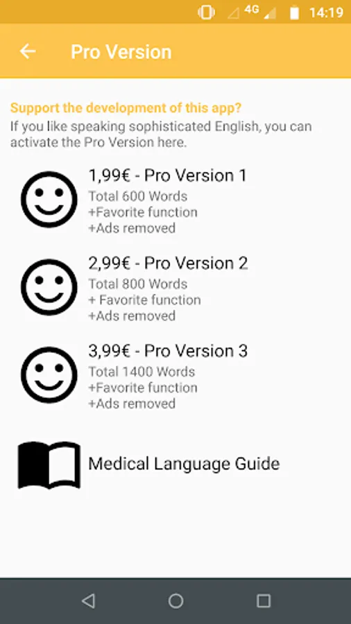 - Proversion with up to 1400 words, ad-free and with favorites function available!