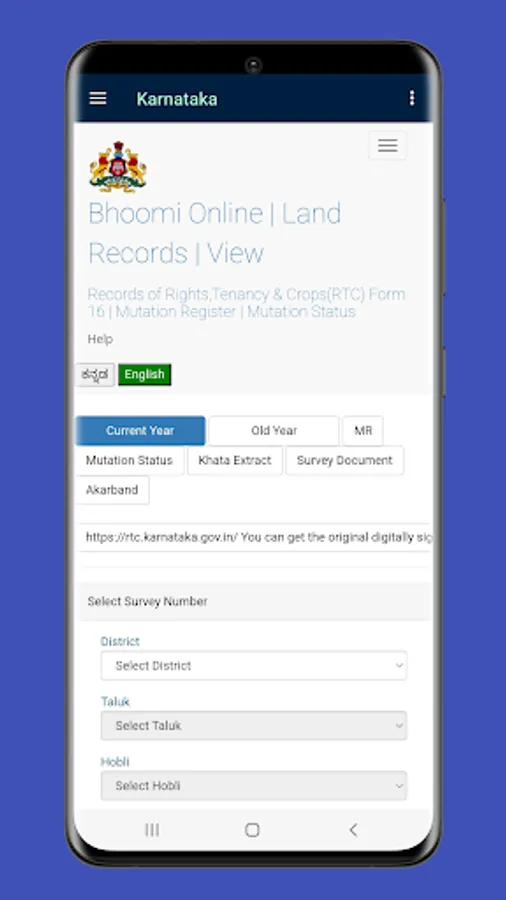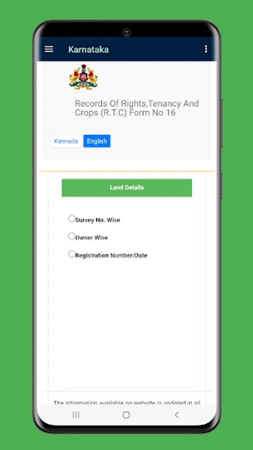 * This APP is NOT associated, affiliated, endorsed, sponsored or approved by Govt of Karnataka digital portal (https://landrecords.karnataka.gov.in/) and https://rtc.karnataka.gov.in/Service78/