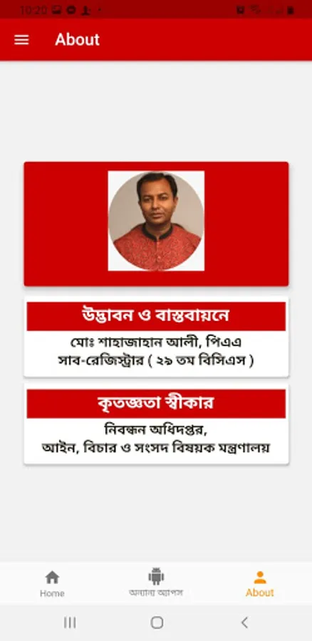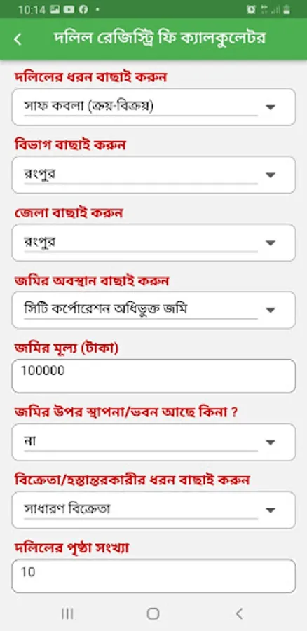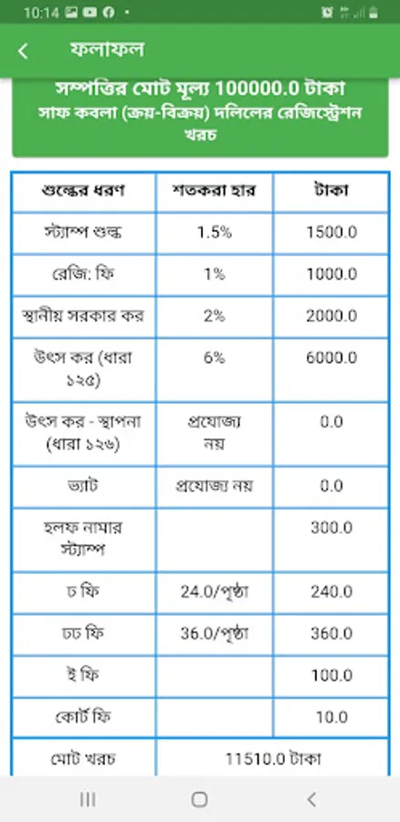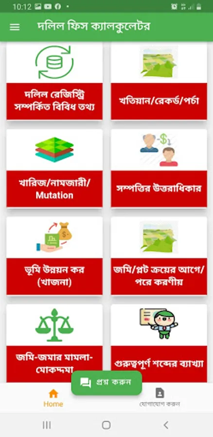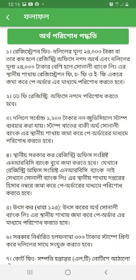 Registry cost of all documents and other information can be easily determined with just a few clicks and almost all information, laws, rules, notifications, gazettes, letters etc. related to land-acquisition and registry of deeds can be known. The app is rich with updated information all the time. Although the app has been developed following the laws and regulations, if any inconsistencies or errors are observed, the original laws and regulations must be followed.