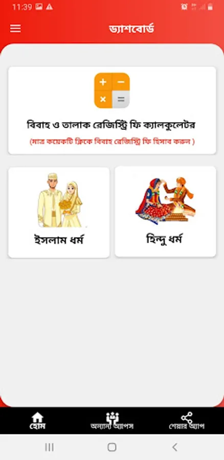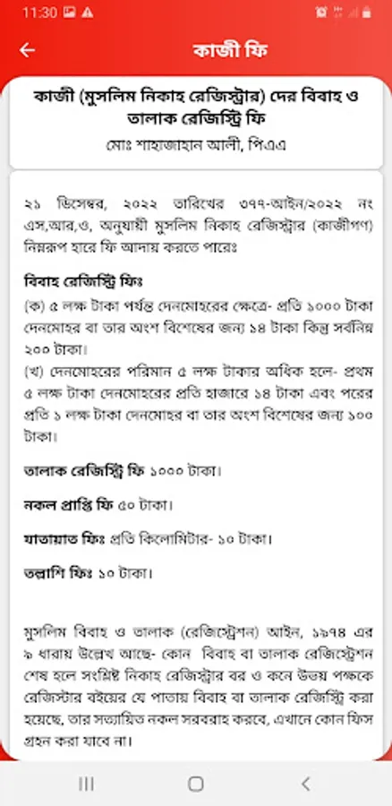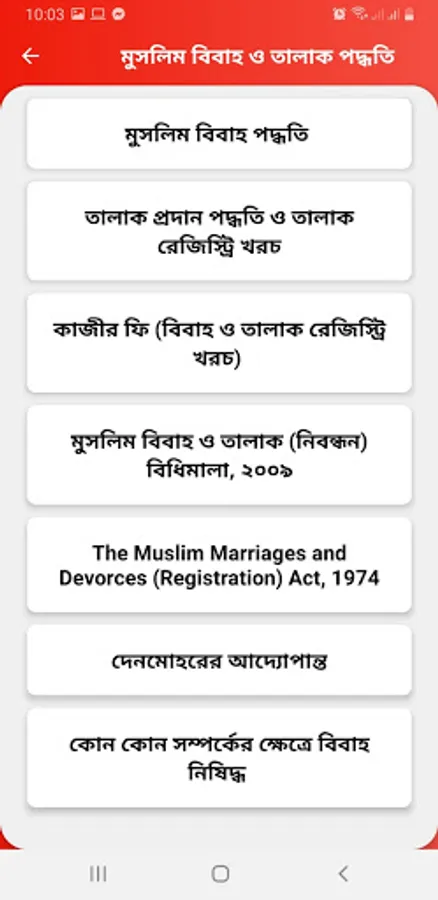 This mobile app contains Muslim Law Marriage Registry Procedure, Marriage Registry Fee Calculator, Divorce Payment Procedure, Divorce Registry Fee Calculator, Muslim Marriage and Divorce (Registration) Act-1974, Muslim Marriage and Divorce (Registration) Rules- 2009 and information and advice on dowry. there is