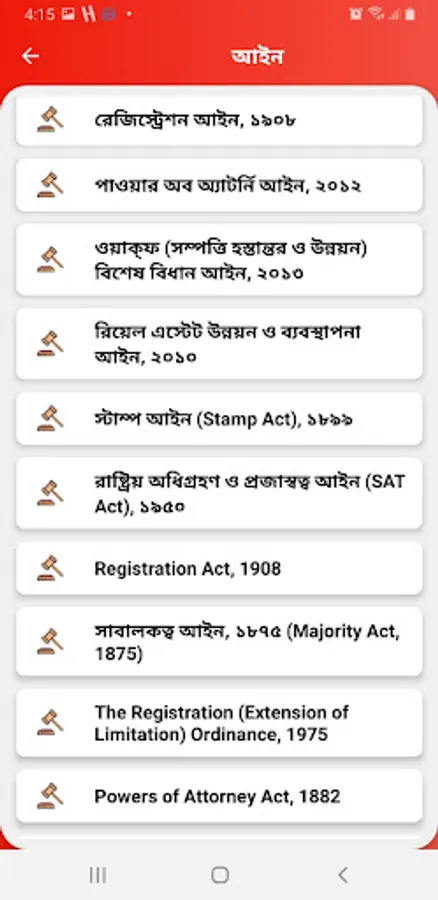 All laws relating to land including Registration Act, Power of Attorney Act, Stamp Act, Wakf Act, Juvenile Act, State Acquisition and Tenancy Act.