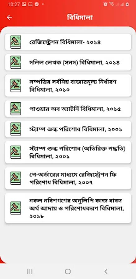 Registration Rules, Deeds (Certificate) Rules, Minimum Market Value of Property Rules, Power of Attorney Rules, Stamp Duty Payment Rules, Collection and Payment of Fees for Duplicators