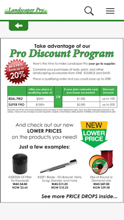 LandscaperPro is home to Lawn Mower Discount Parts, Tools, and Power Equipment. Save Money on Mower Blades like Gator blades, Belts, Filters, Lawn Mowers, and more! Parts for Exmark, Scag, Toro, Bobcat, Bunton, Encore + more. We are dedicated to providing you with the widest selection of products that you need to run your business at great prices! Combine your purchases of tools, parts and power equipment and take advantage of some of the lowest prices in the industry while qualifying for volume discount programs normally reserved only for the largest companies.