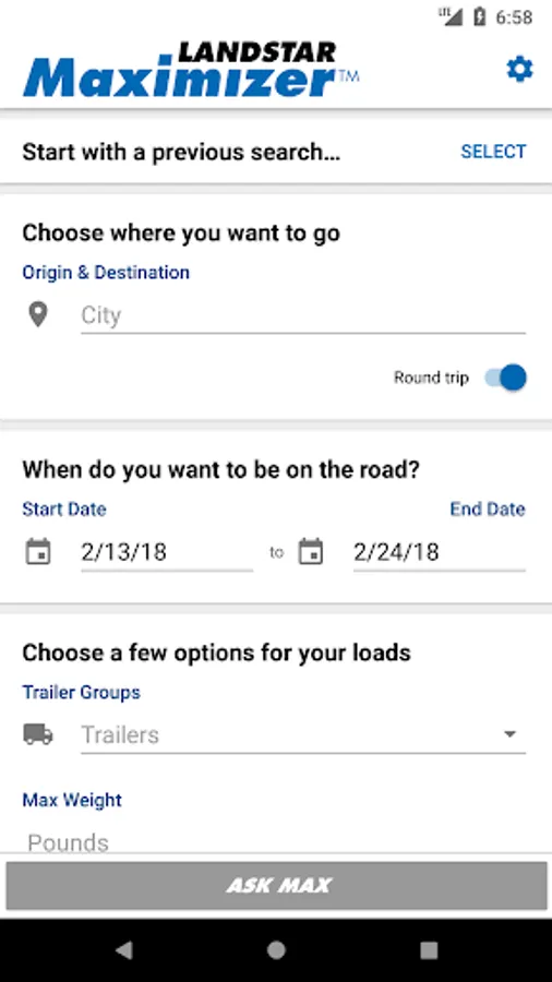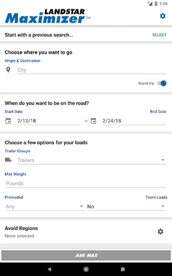 The Landstar Maximizer™ app is a robust engine that works for you. How much time do you spend each day putting multi-leg runs together to generate maximum weekly revenue? Instead, simply hit the ASK MAX™ button and the app will do the work for you. Input your search criteria and the Landstar Maximizer will display the best combinations.