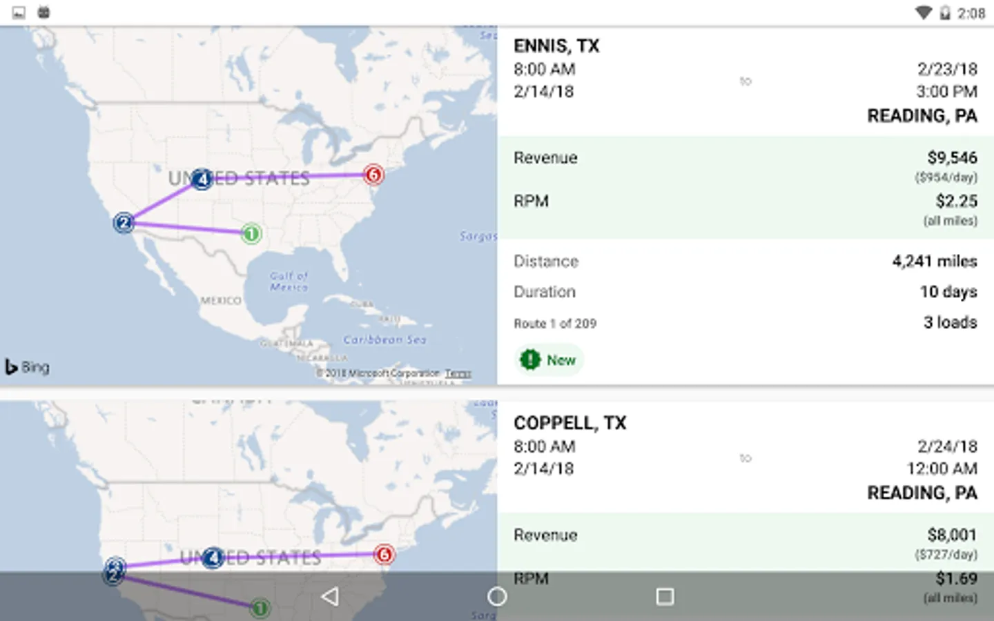 The Landstar Maximizer then searches all Available Loads and displays the best options for you sorted by revenue, and displaying total miles and total rate per mile.