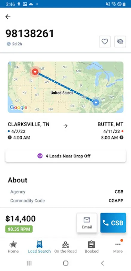 See important details for a load, including revenue, rate per mile, load dates and times, weight, miles, load age, load comments and more.