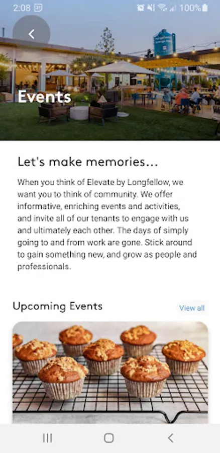 Elevate by Longfellow connects you to your building and all of it's unique resources! Get in touch with the community around you and take advantage of all your property has to offer. From scheduling conference rooms, organizing social events, scheduling fitness classes, and managing building access, you'll be fully connected with the building you work in and the people around you. We hope you enjoy it!