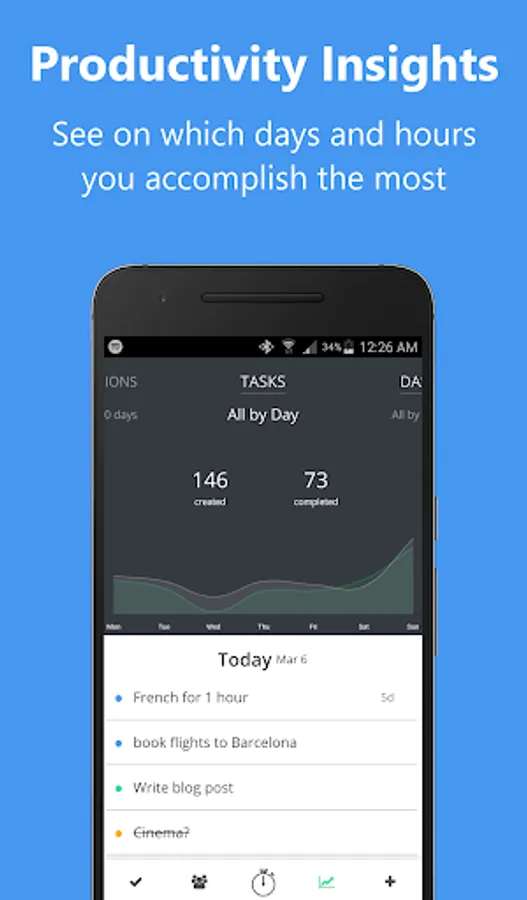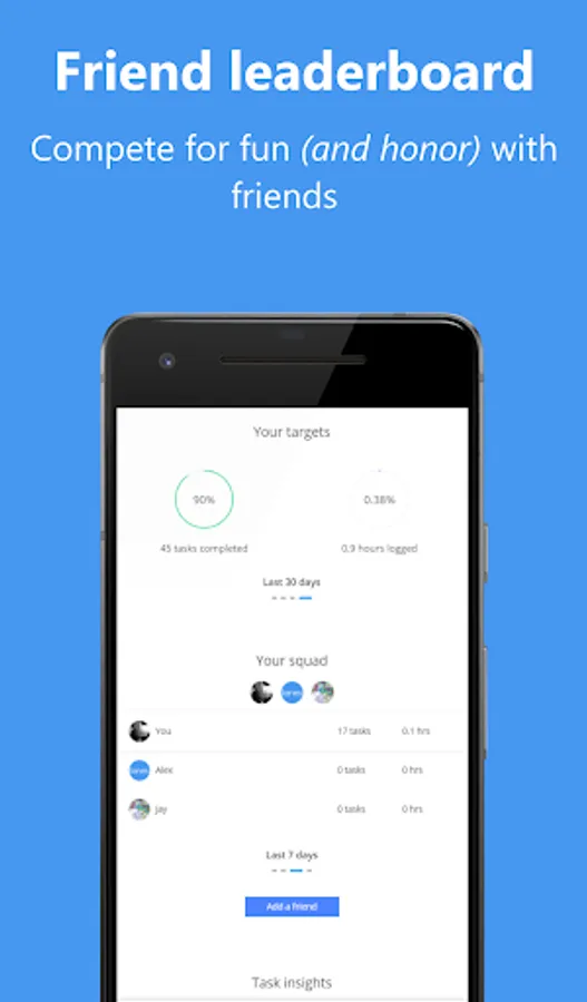 • Productivity insights - see when you're most productive. Plus a Friend leaderboard so you can compare productivity with friends!