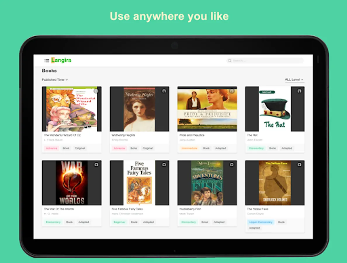 Langira helps you practice English reading, listening, speaking and improve vocabulary with thousands of bestselling audio books and other English audio articles.