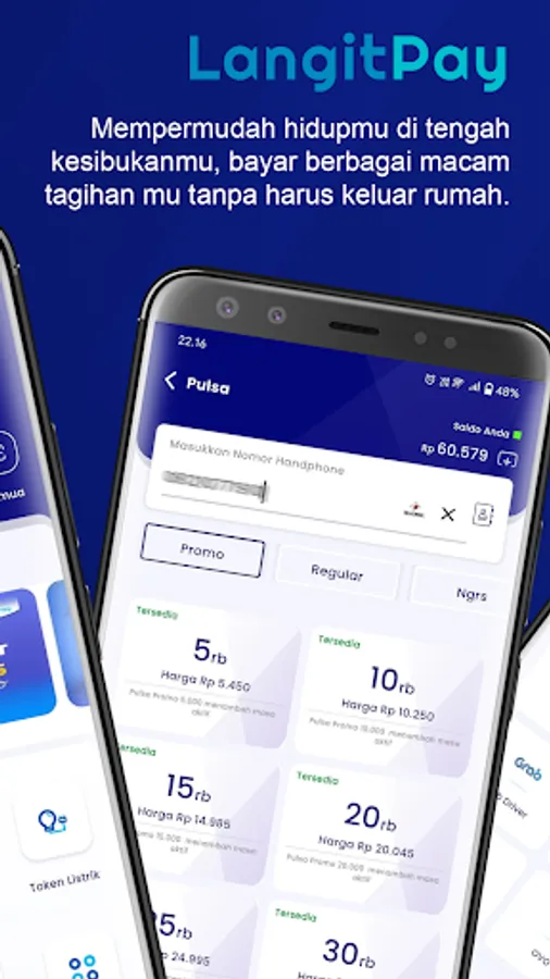 LangitPay is an application for buying/paying credit, PLN, electricity tokens, data packages, BPJS, PDAM, multi-finance, insurance, streaming vouchers, and various other bills, both for yourself, family, friends, friends, anytime & anywhere. LangitPay also provides the Cheapest Guarantee online.