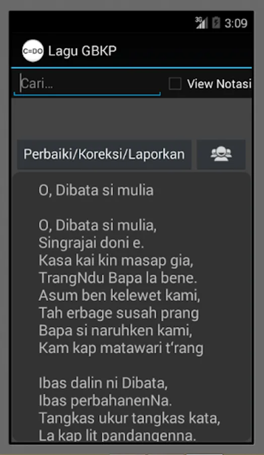 It is expected that the participation of the users of these applications to assist in the repair or updating of this application, especially in correcting, and editing existing lyrics at this time. Also added a notation of each song, especially for soprano (voice 1) and if possible at the same SATB harmony.