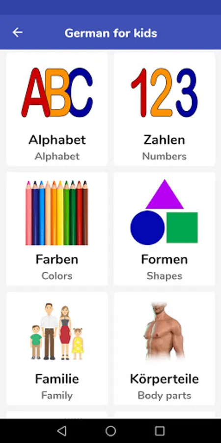 - German for Kids app is a way of learning German for kids or beginners. It makes learning German efficient and fun.