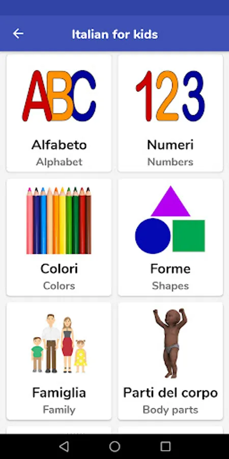 - Italian for Kids app is a way of learning Italian for kids or beginners. It makes learning Italian efficient and fun.