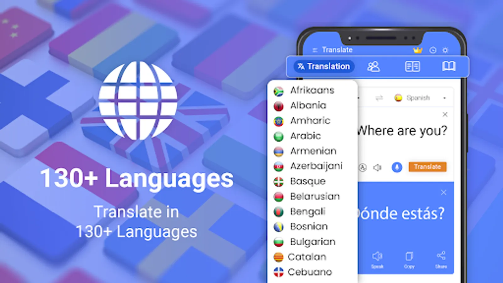Globalized Multilingual: online translate all langue is an ultimate audio or sentence translator guru that let you speak into more than 130+ languages such as Spanish (Español),Latvian (Latviešu), Czech (Čeština), Italian (Italiano), Korean (한국어), Slovenian (Slovenščina) and French (Français). No need human interpreter or any other kind of language interpretation now. If you want to learn English to Spanish language, Arabic to Swedish, Chinese to English, just download all voice text translator app and make it English to Spanish translate quickly and learn Spanish language whenever you want. You may also use language translation as a free live text translator app.