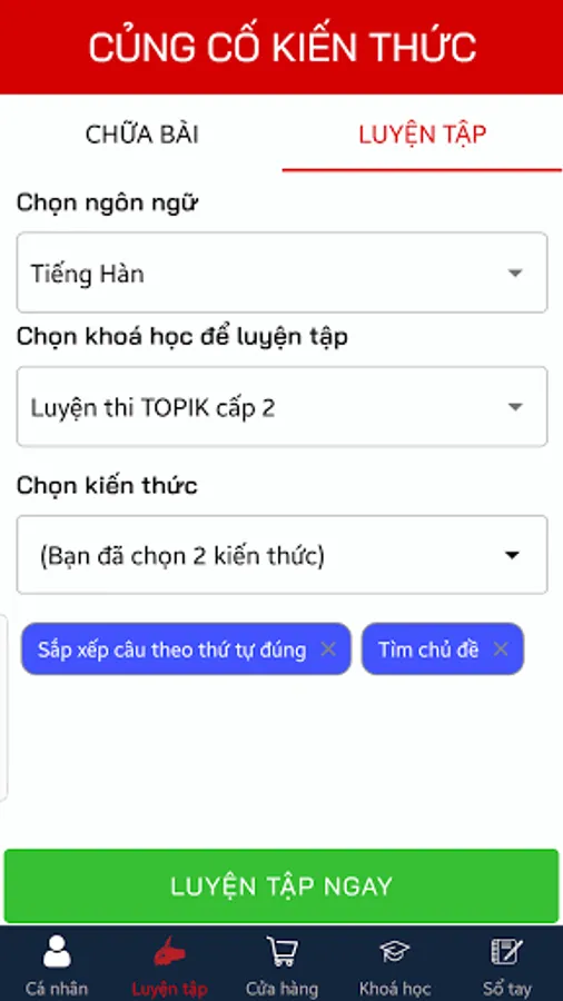 6. Touch "Practice" in the Main Menu to practice the lesson content. Here you can also learn the alphabet and numbers.