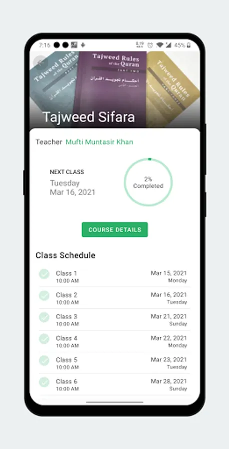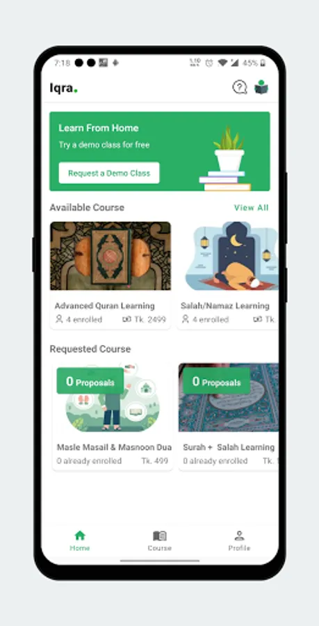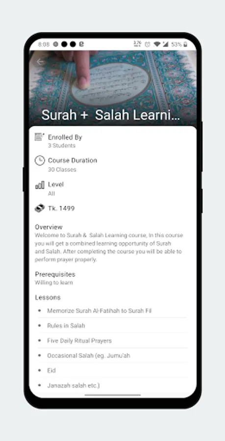 Wide collection of courses: We provide comprehensive courses from very basic topics to advanced. So you can pick your suitable course, whether you don't know how to recite the Quran or you can recite but want to improve. Some of our courses are: Noorani Qaida, Tajweed Sifara, Surah and Salah Learning, Masle Masail & Masnoon Dua.