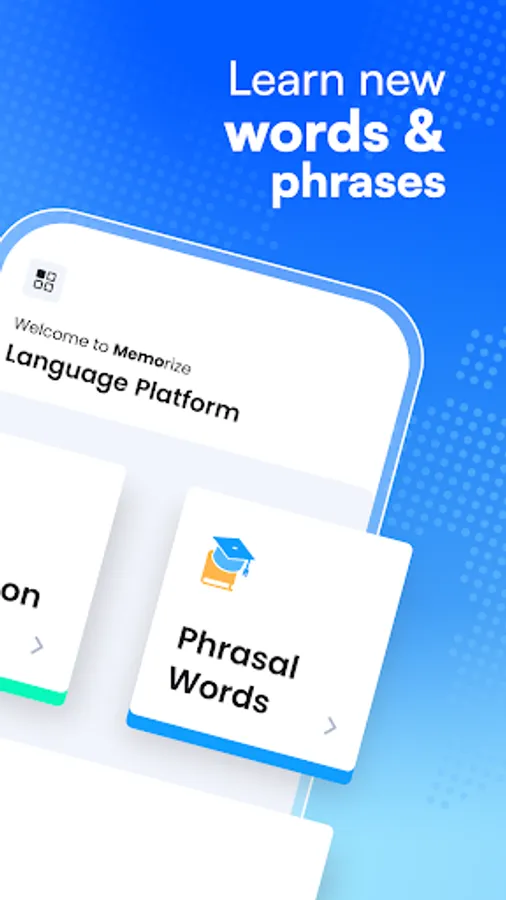 Elevate your linguistic capabilities by Memorize Free Language Learning apps! Learning languages is more easy now. Delve into phrasal verbs and idiomatic expressions, ensuring you're in sync with native speakers and colloquial chats.