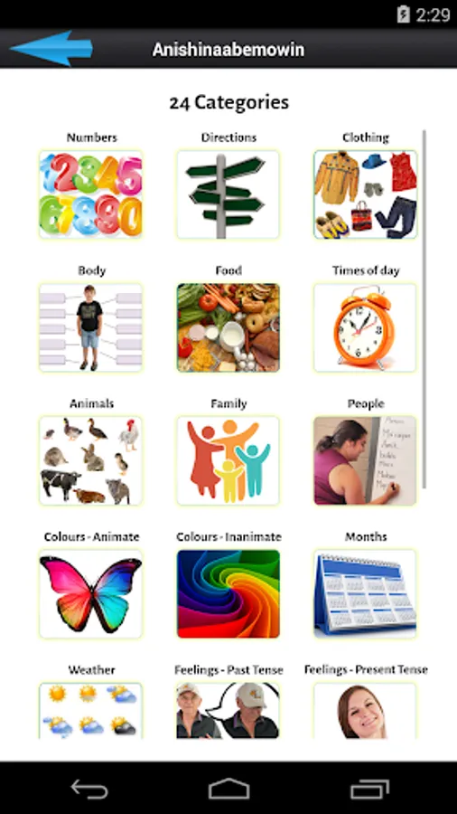 This Anishinaabemowin Language App contains over 500+ phrases/words recorded audio files and the following: