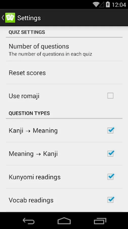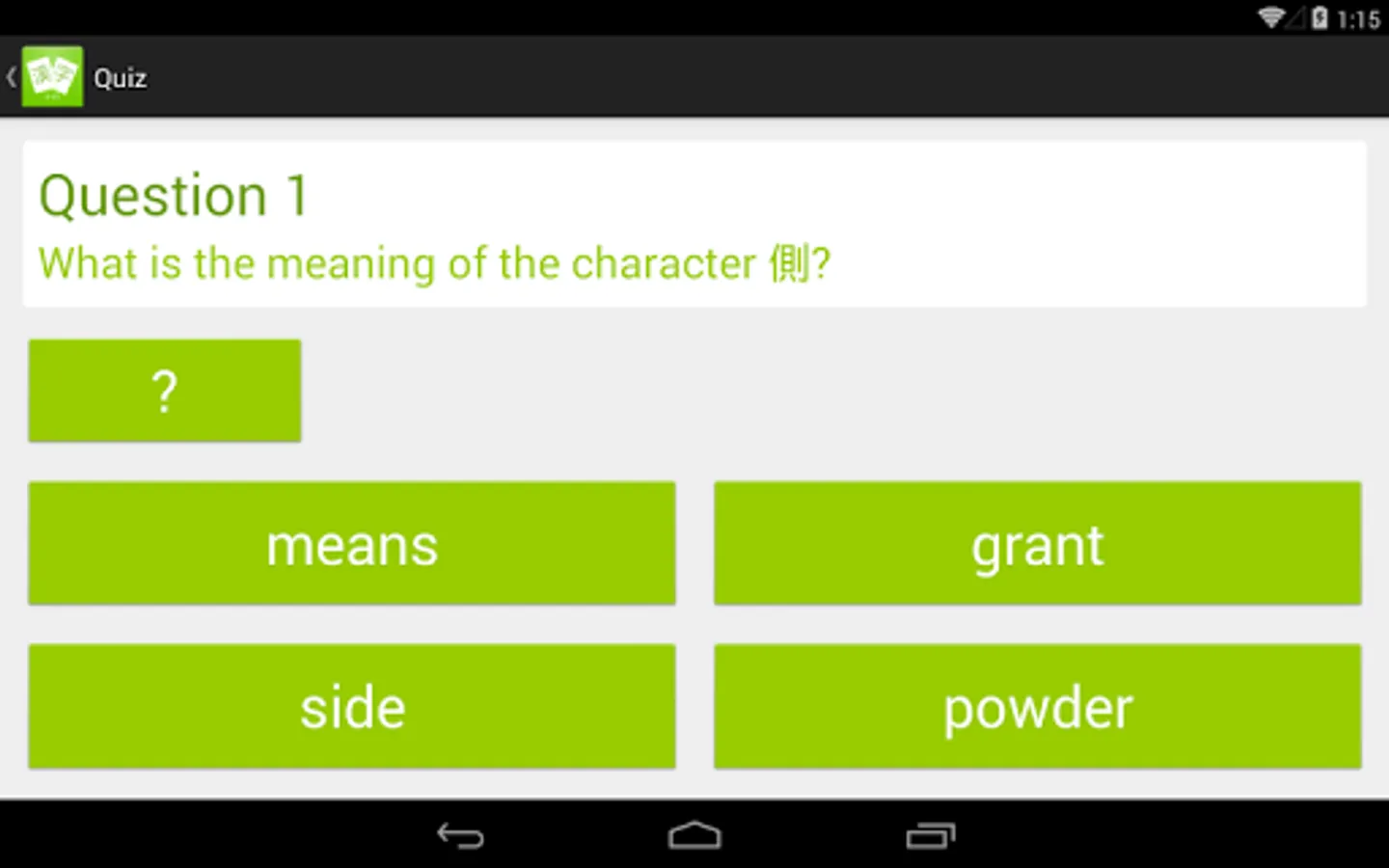 • Hundreds of possible questions across all known JLPT N3 Kanji.