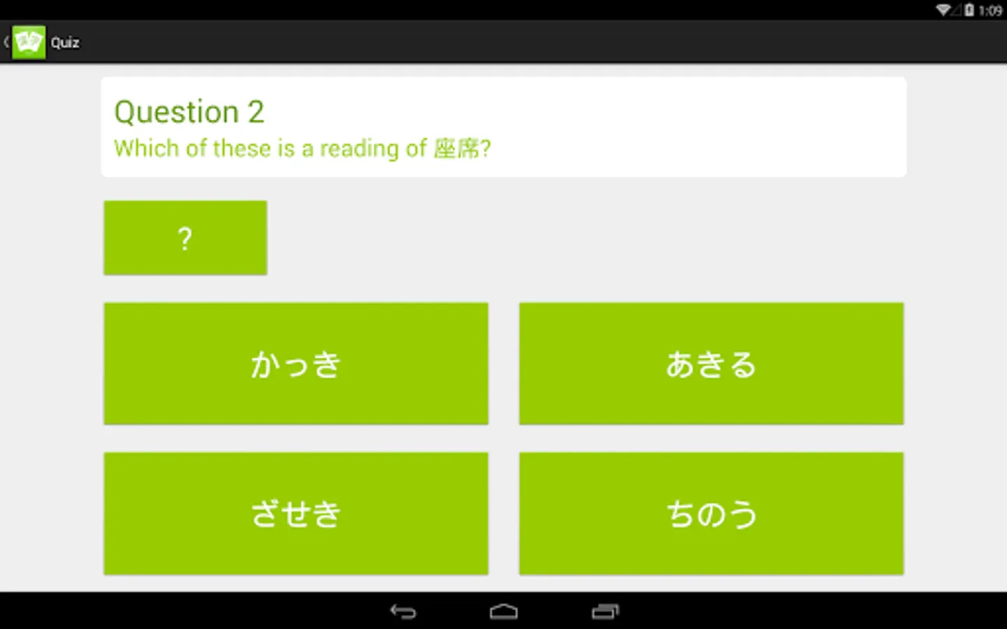 • Questions are tailored based on previous answers so that already known Kanji appear less often.