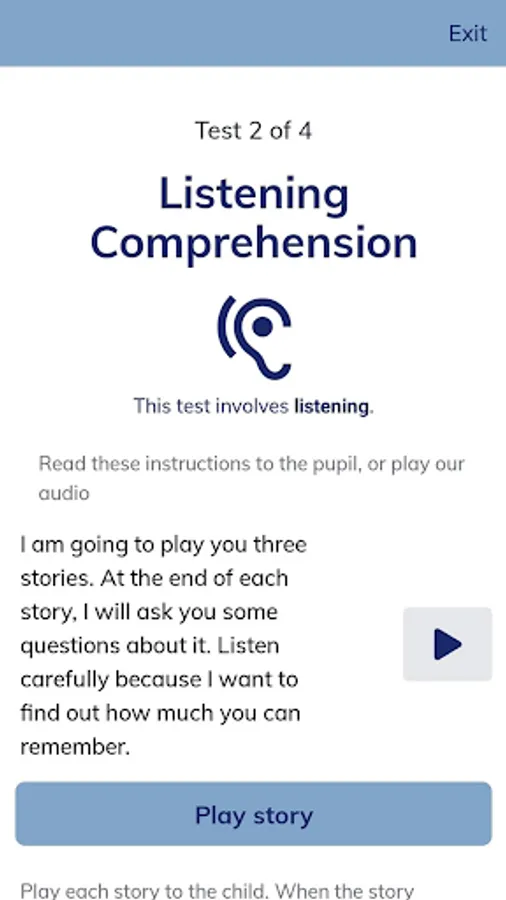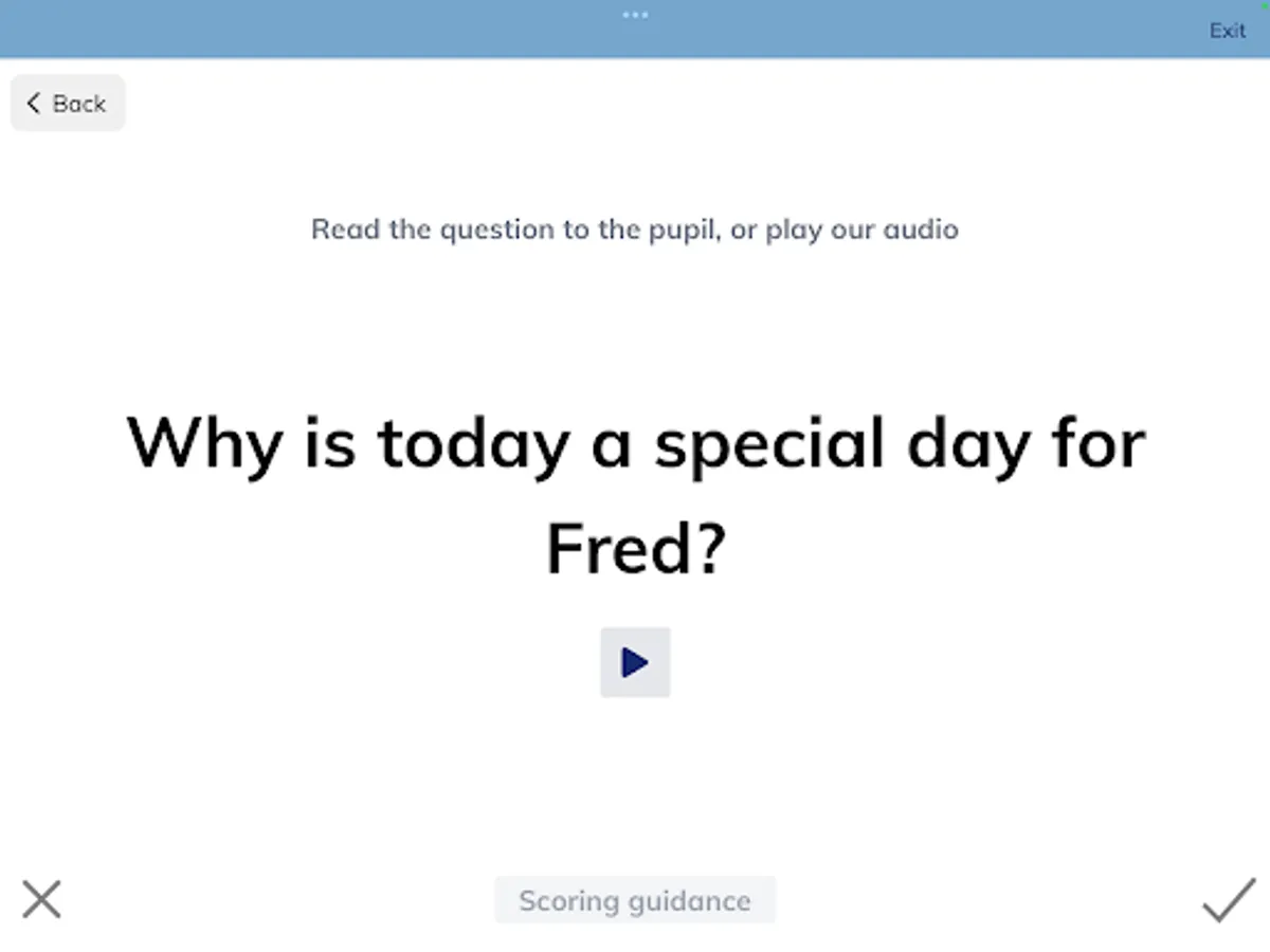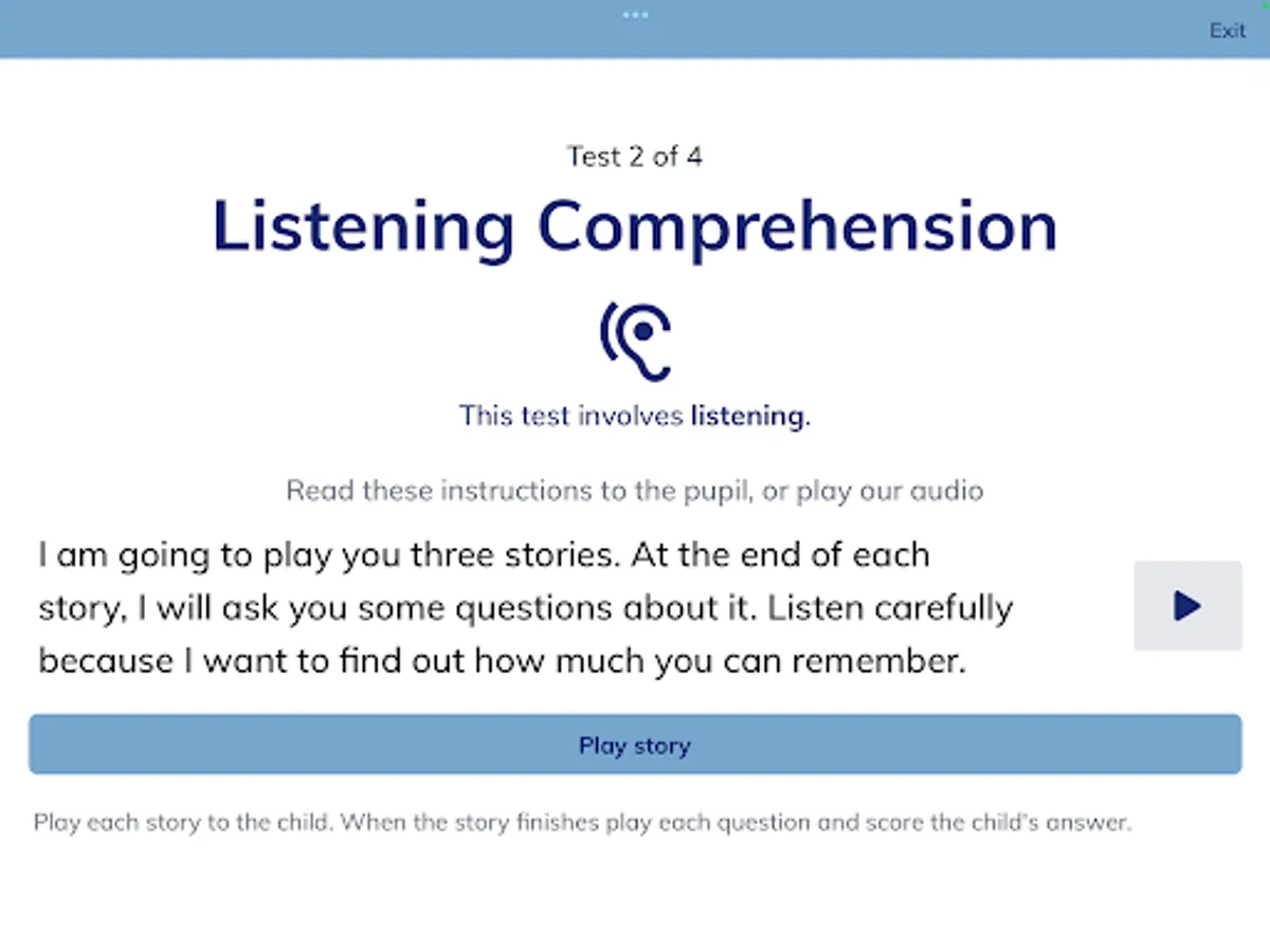 LanguageScreen assesses four components of oral language skills by guiding the examiner through a series of activities. In these activities the child is presented with pictures and sound clips and is asked to perform simple tasks. Depending on the activity, the app either directly records the child’s responses, or the examiner’s scoring of their responses. Assessment data is uploaded to oxedandassessment.com which generates individual and class assessment reports. In order to use LanguageScreen a school must register for a free trial on oxedandassessment.com.