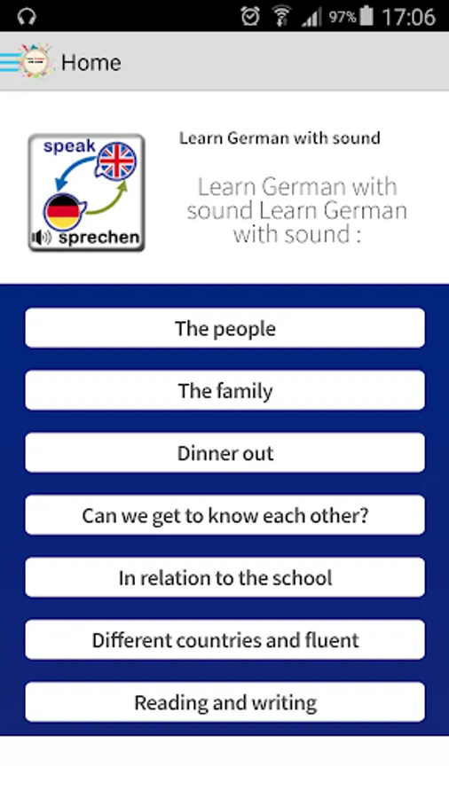 Free app Learn German with sound. Start learning German with pronunciation today with this application makes learning the language enjoyable and easy.