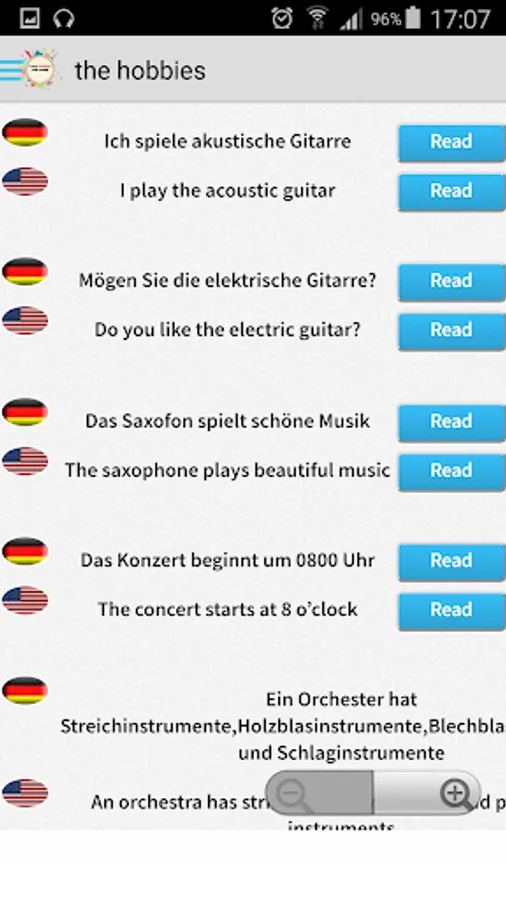 in numbers , the time of day , the hobbies , Drinks and juices , The color space) that promote knowledge and language proficiency And pronunciation in both languages english and German.