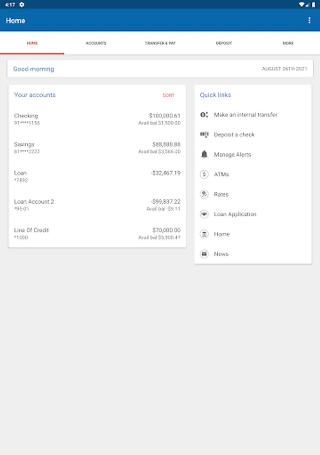 Access your accounts when and where you want right in the palm of your hand. It’s fast, secure and free access to your accounts anytime, anywhere. You have access to check your balances, pay bills and transfer money...while you are on the go!