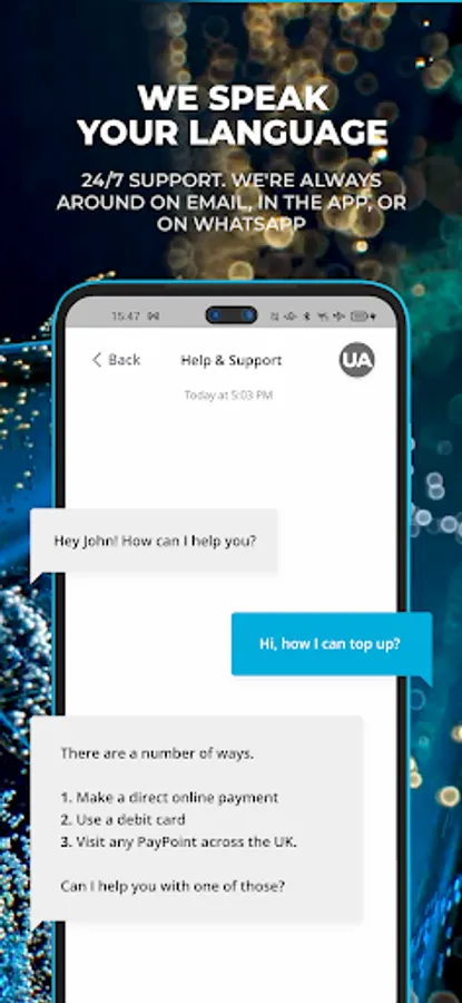 24/7 customer support through the app, WhatsApp or email. We speak over 100 languages (with the help of technology).