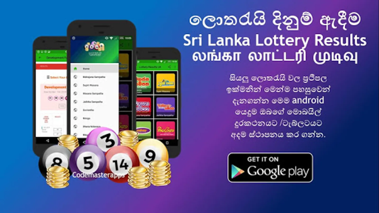 This is a Informative Third Party app only providing wining numbers of the Sri Lankan lottery conducted by NLB and DLB.This app does not represent the any government agency.
