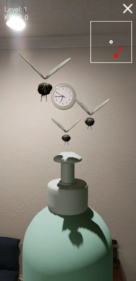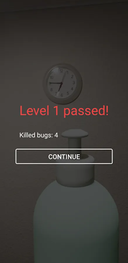 Use the soap bottle to shoot all bugs with the drops of soap.
