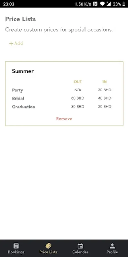 - Create price-list and assign to your services you offer. Decide how much your services cost and when to offer them.