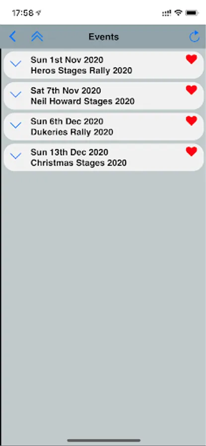 You can press the outline of the heart to mark an event as a favourite, which will then appear on your favourites list.