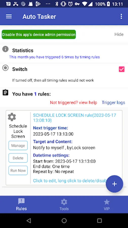● System notification after each timing rule is triggered