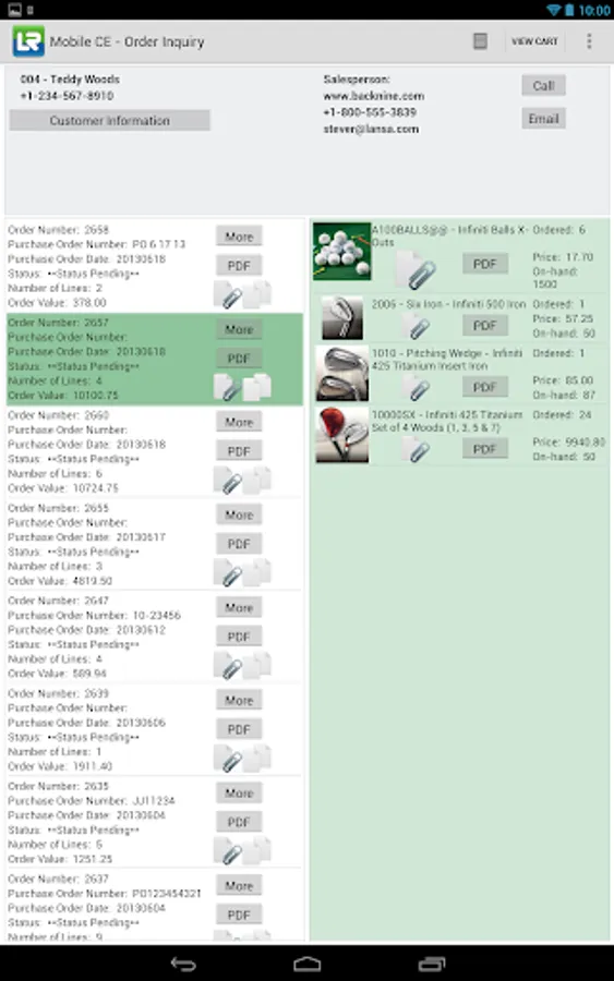 - Touch-optimized navigation enables sales teams and customers to quickly validate inventory levels, confirm UPC numbers, review and update order information, and more.