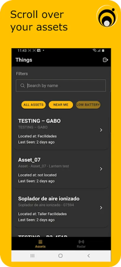 Users just have to log in with their platform credentials, type-in the asset´s name and the tool resolves the room or area in which the asset is located in real-time. Once in the room, the App turns the phone into a proximity radar to guide the user into the asset´s proximity.