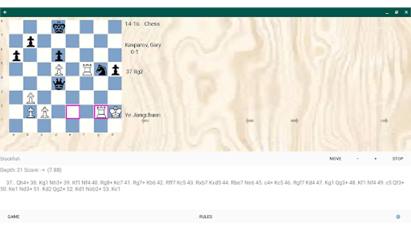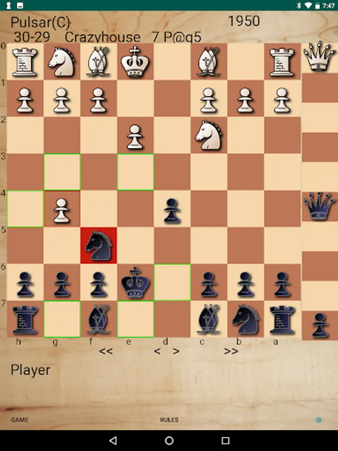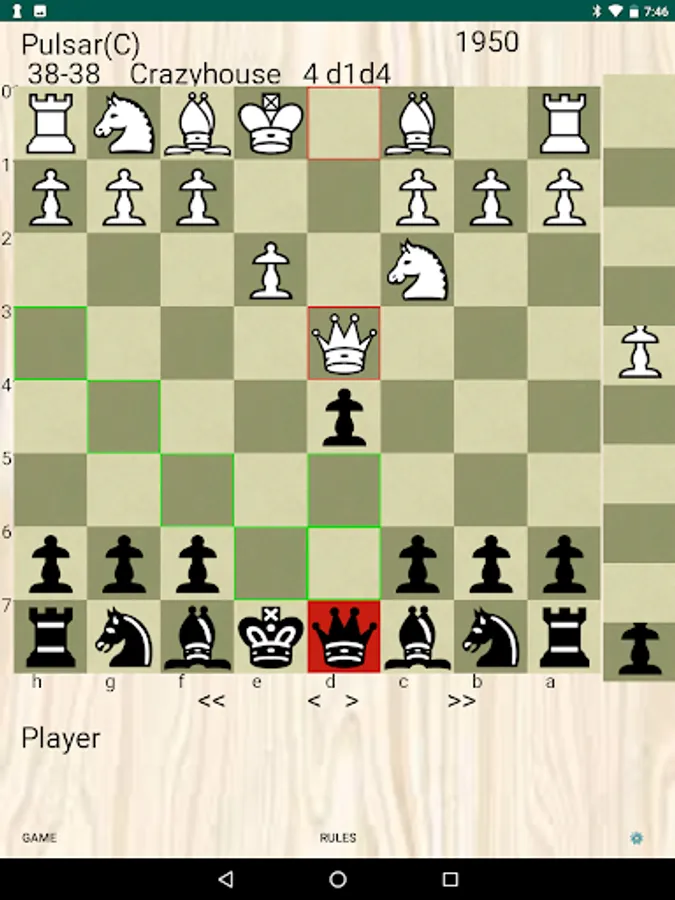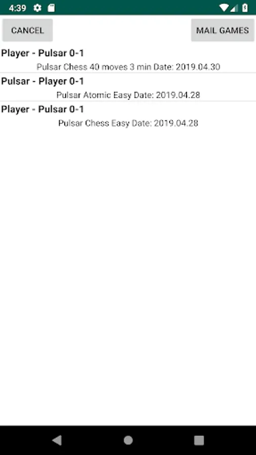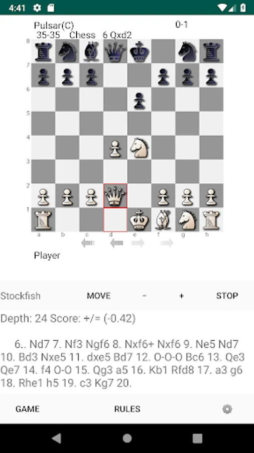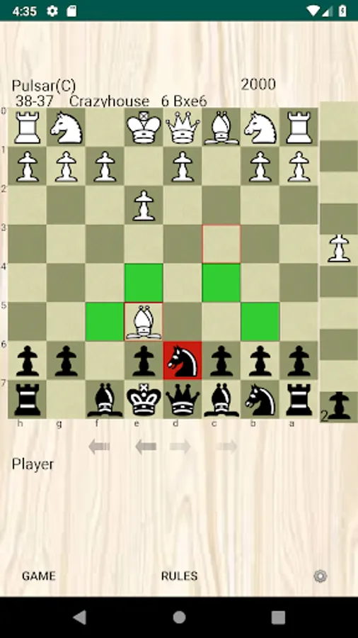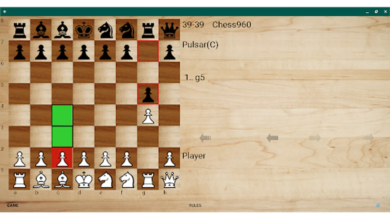 Pulsar logs all its games that end with a result and they can be opened in the Game menu. Newest games are on top and if the game is a chess game, Stockfish engine analysis is available. Engine analysis is also available in reviewing Chess960 games however no castle info is sent to the engine. Additional classic PGN game collections are available to view and analyze.