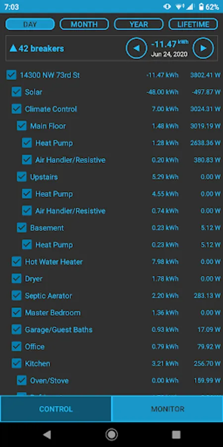 By installing a Lantern Power Monitor Hub in your home's circuit breaker panel, you'll be able to see power usage in real time. View usage of each individual appliance in your home so you can identify and eliminate waste.