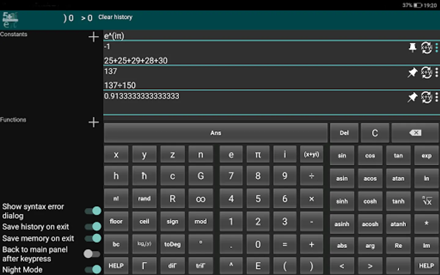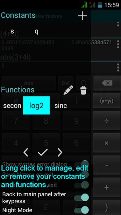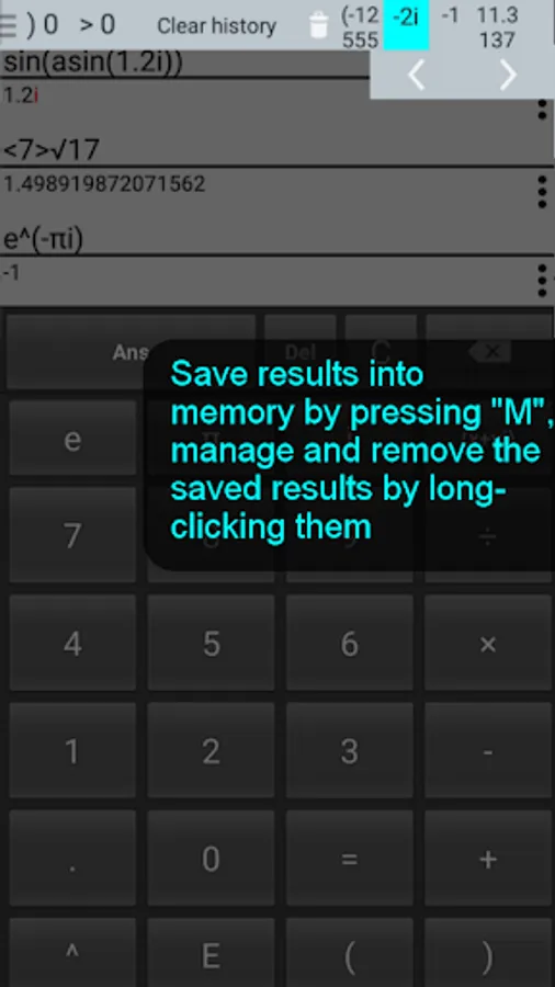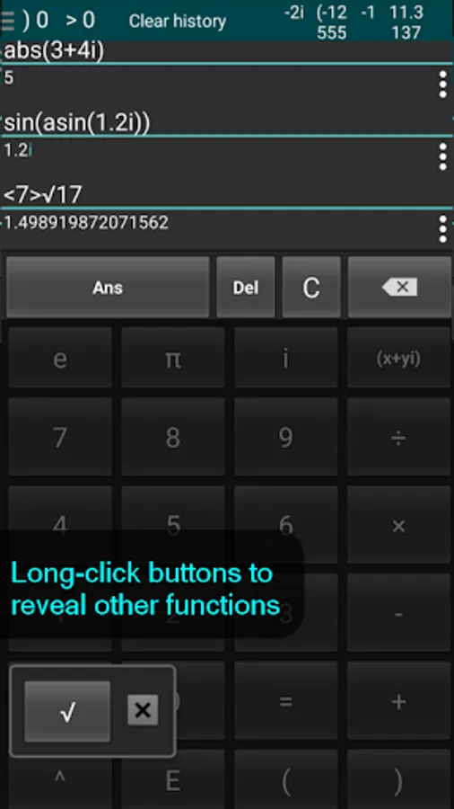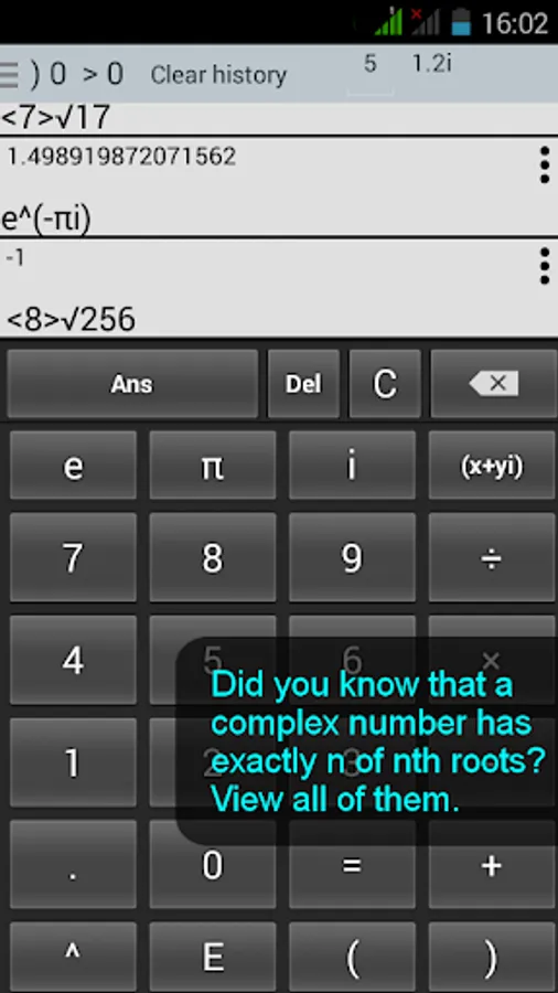 Complex Scientific Calculator (or simply Complex Calc) is the swiss knife of a true mathematician. This high performance tool offers all functions of a scientific calculator, and it is unique for the ability to operate with complex numbers. It also implements the necessary functions for working on the complex plane, e.g. argument and conjugation.
