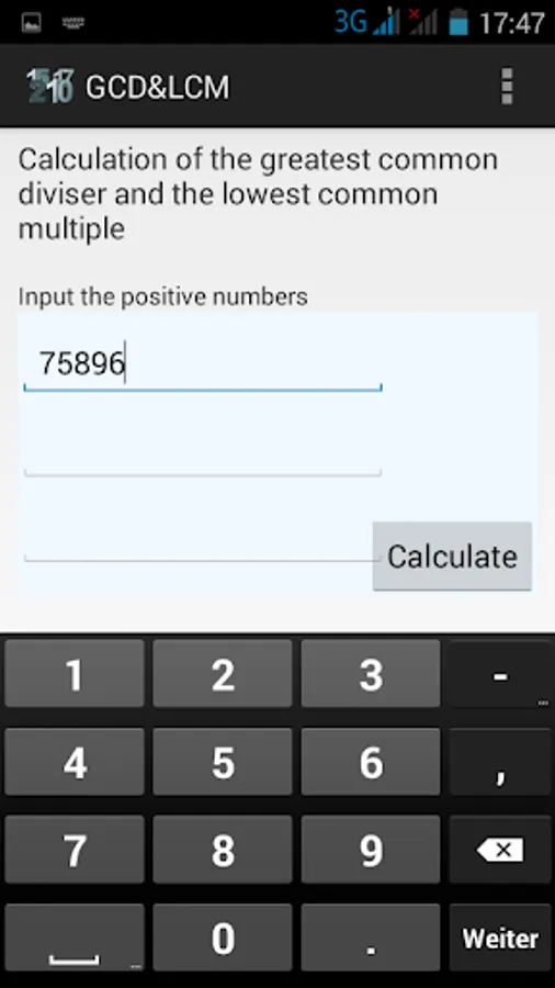 Simple app to calculate the greatest common divisor, lowest common multiple and prime factors of up to six numbers.
