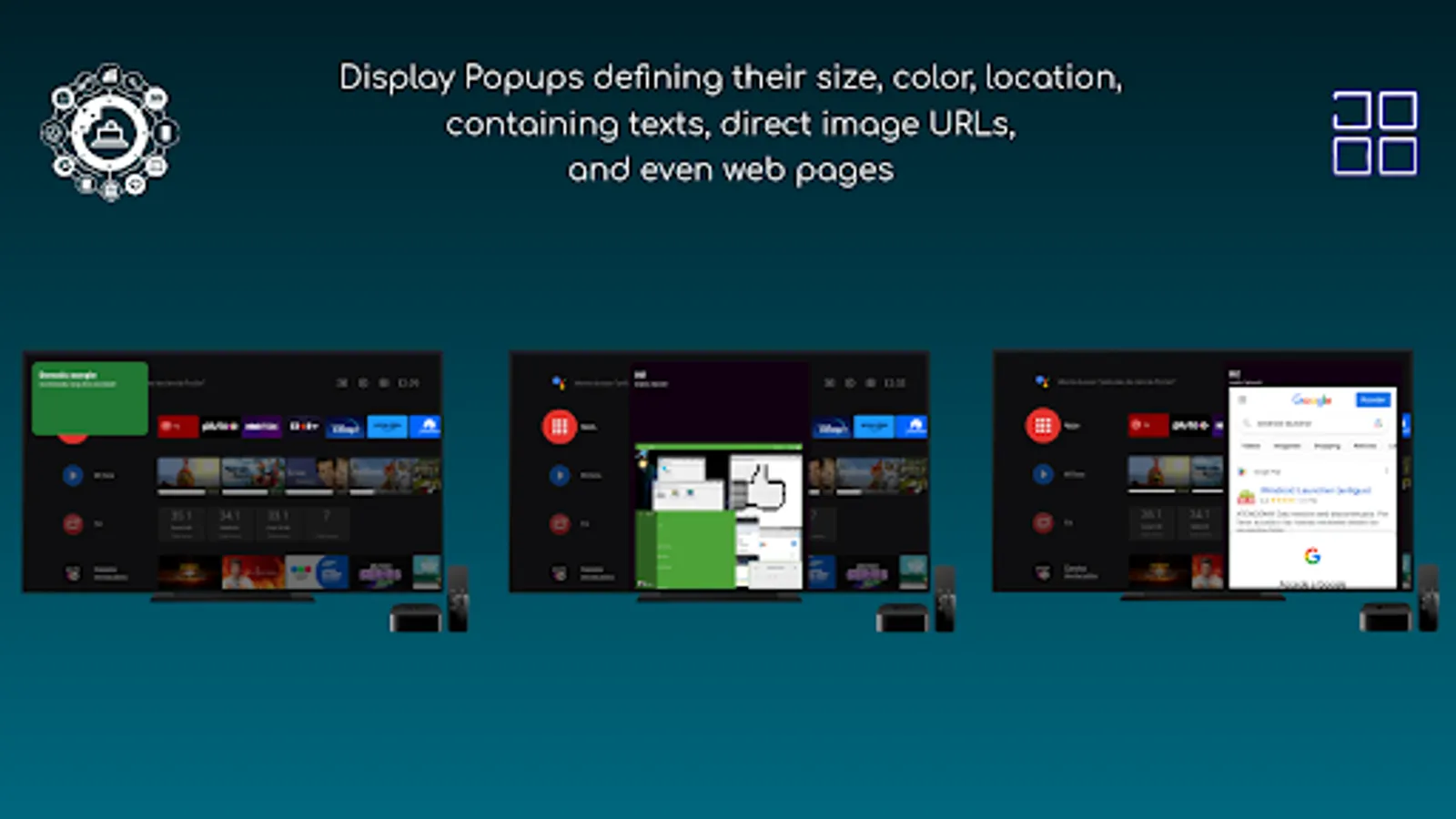 For devices that lack configuration interfaces to grant the 'Show over other apps' permission, such as TVs, you must manually grant the permission as follows: