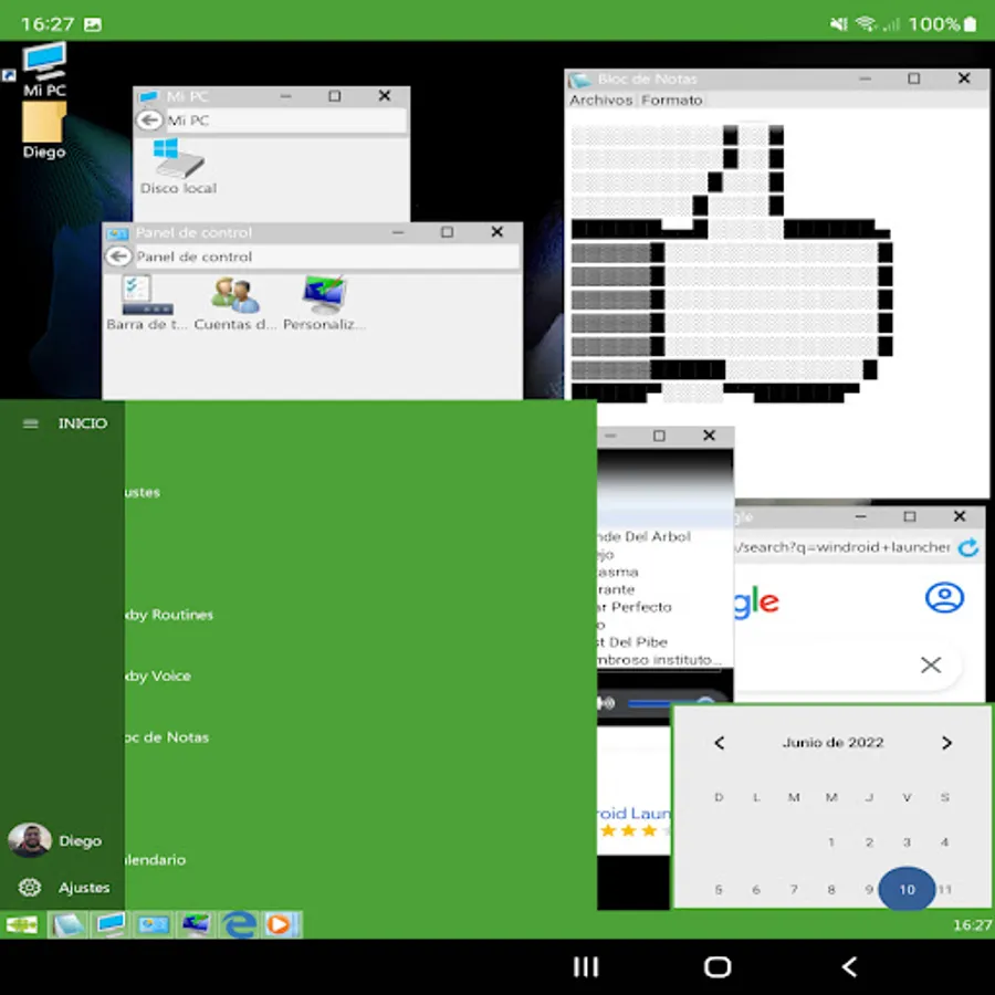Ademas contiene una barra de tarea y selector de aplicaciones. Es cómoda, intuitiva, rápida y eficiente. Gracias al soporte multitareas, puede ejecutar muchas aplicaciones nativas al mismo tiempo.