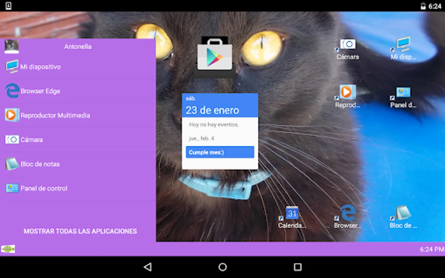 -Escritorio personalizable: Coloque iconos a gusto, agregue Widgets y cambie el fondo de pantalla con sus imágenes preferidas. Ademas podrá elegir la organización de sus iconos: Alinear en cuadricula o no alinear.