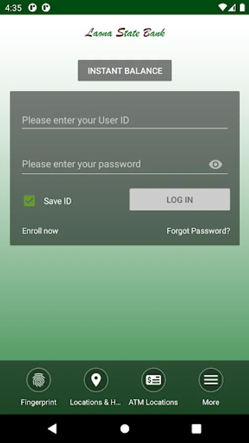 Getting started is easy. Simply download the app and sign on with your Online Banking user credentials. For more information about Laona State Bank’s mobile services, please visit www.laonastatebank.com or call us at 715-674-2911